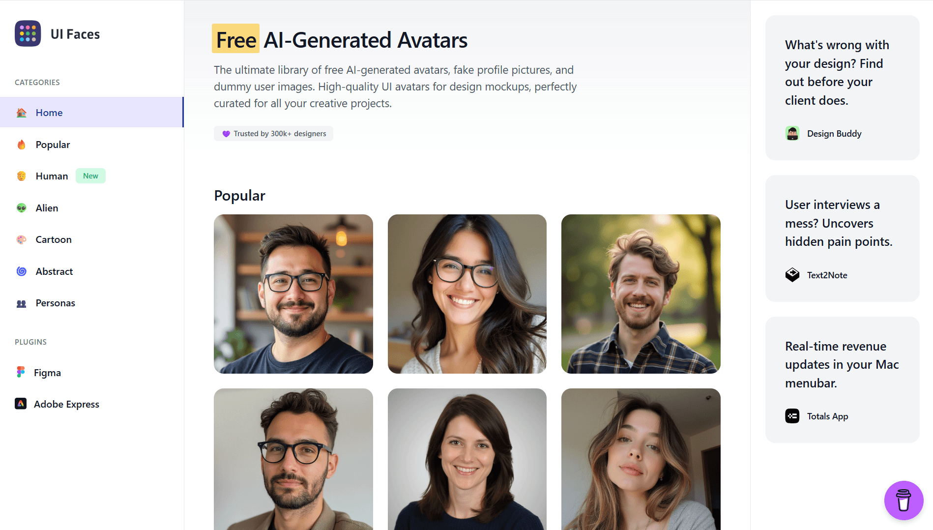Aggregated avatar library for UI design, personas, and prototypes