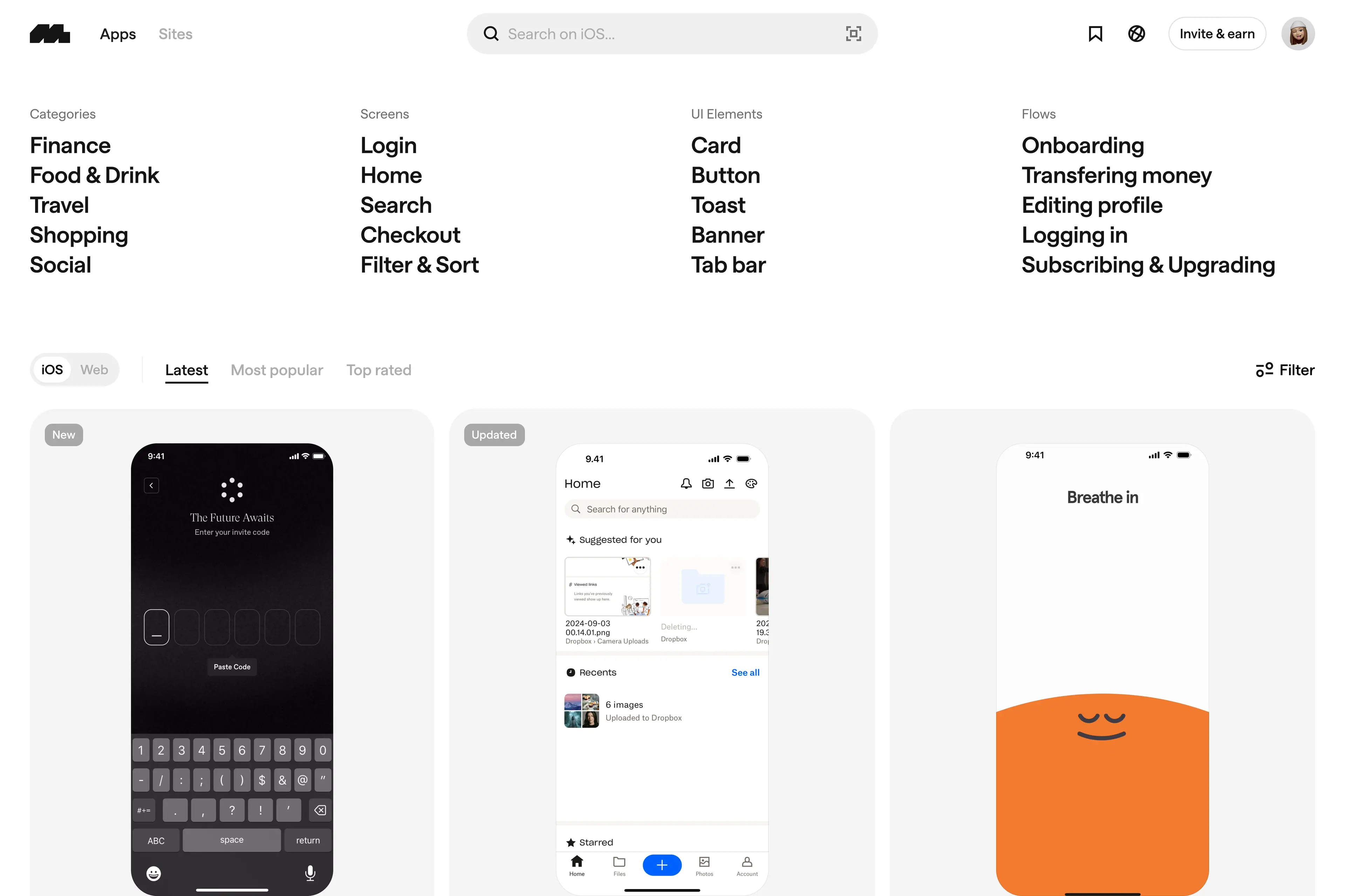 Curated library of real mobile & web UI patterns.