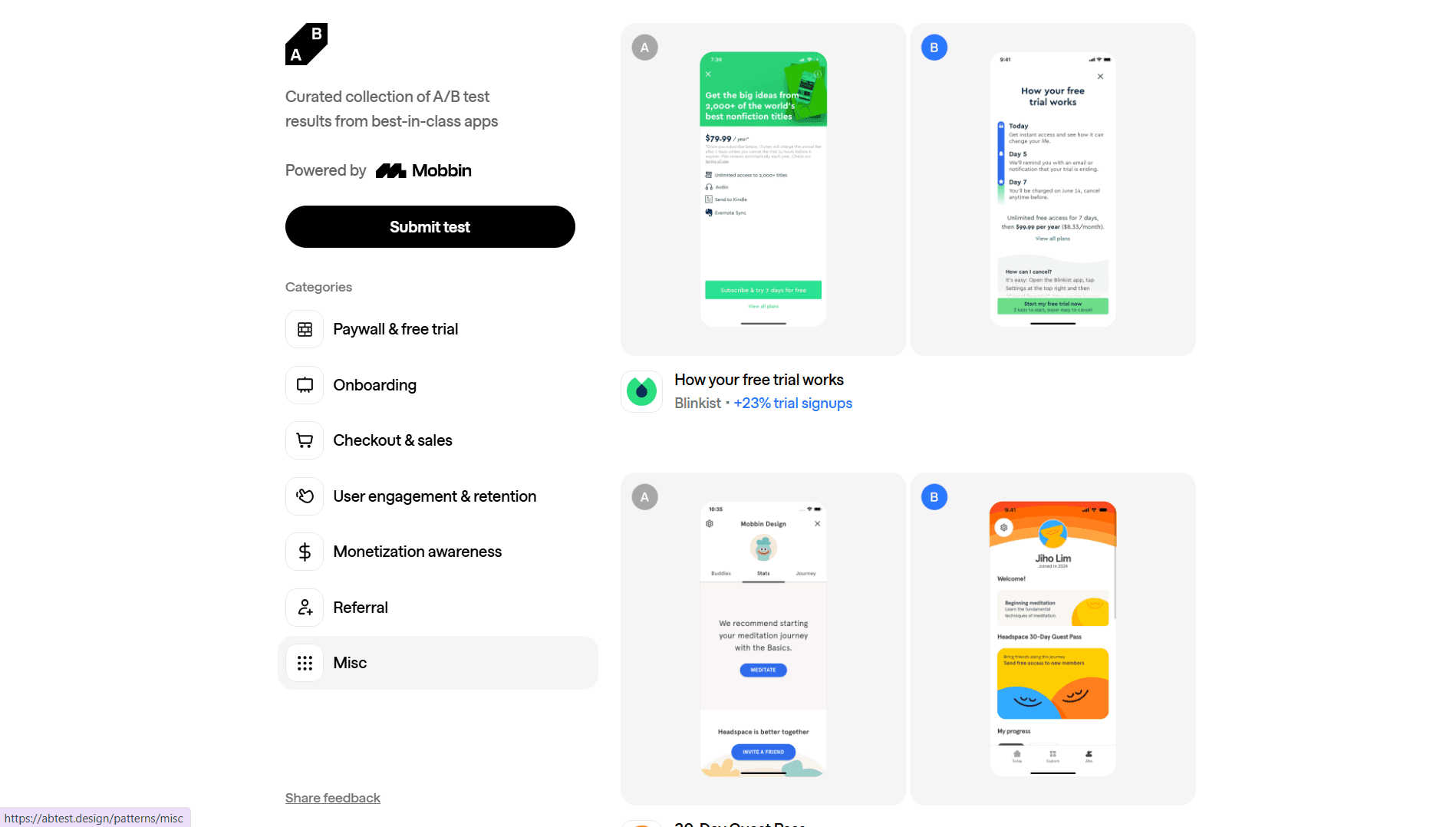 Library of real-world A/B test case studies for UX & product design